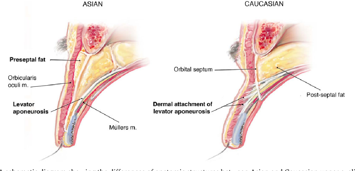 추가적으로 이 안와지방은 동양인과 서양인이 큰 차이를 보이고 있습니다.
