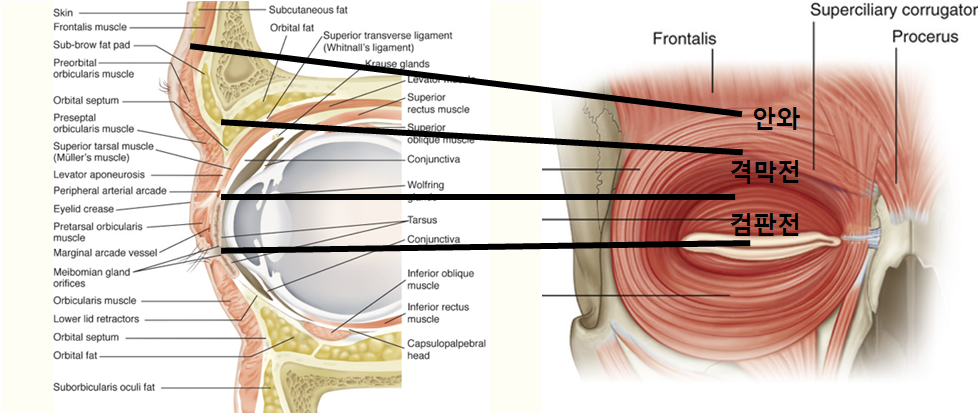 2021.07.02 - [성형외과] - 눈 주변 구조물 2 (상안검 해부학 고급편)