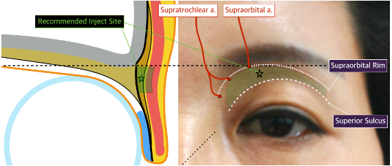안와지방에 넣게되면 격막까지 빵빵해지면서, 눈이 오르고 내리는 데 문제가 될 수 있으며, 격막 안에는 혈관이 많이 지나가기 때문에 위험합니다. 따라서 거의 표면에 진피 필러나 자가지방 이식을 통해 꺼진 눈을 치료할 수 잇습니다.
